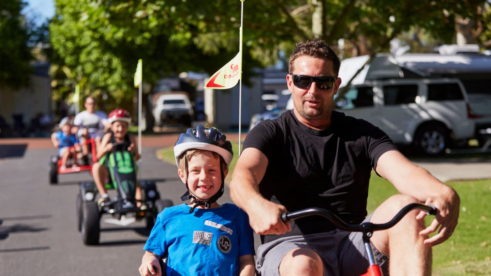 This place has to be the best. Jumping pillow, pool, laundry, camp kitchen, fantastic showers and toilets, trike hire and all within a short distance and in safety for the kids. The coffee delivery se... Read more